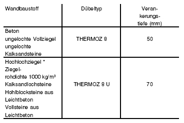 Die Dübellänge richtet sich nach dem jeweiligen Untergrund und der verwendeten Dämmstoffdicke. Bitte die Angaben des Dübelherstellers beachten. Welcher Dübel? Abhängig vom Wandbaustoff Die Dübellänge ergibt sich aus: · Verankerungstiefe T + · evtl. Altputz + · Kleber + · Plattendicke + · etwas Toleranz. Verdübelt werden die Dämmplatten in den vorgefrästen Stellen je nach Untergrund mit bis zu 6 Dübel pro Dämmplatte. Das ergibt 8 Dübel pro m² (Die genaue Anzahl entnehmen Sie bitte unseren Unterlagen). <Vorarbeiten> <Anschlussarbeiten> <Riemchen ansetzen> <Fugen> |